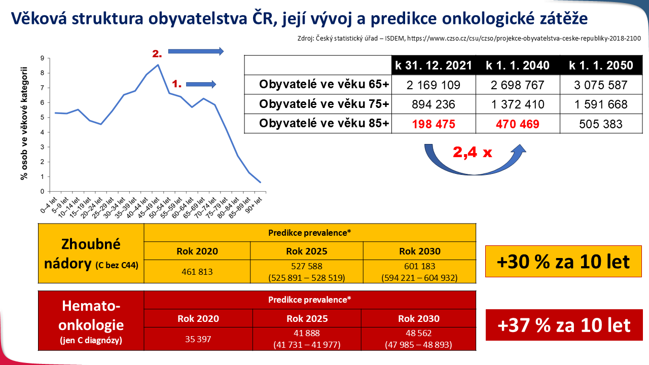 - Onkologická zátěž populace poroste – projekce ukazují nárůst prevalence léčených pacientů o 30 až 37 % během příštích deseti let.